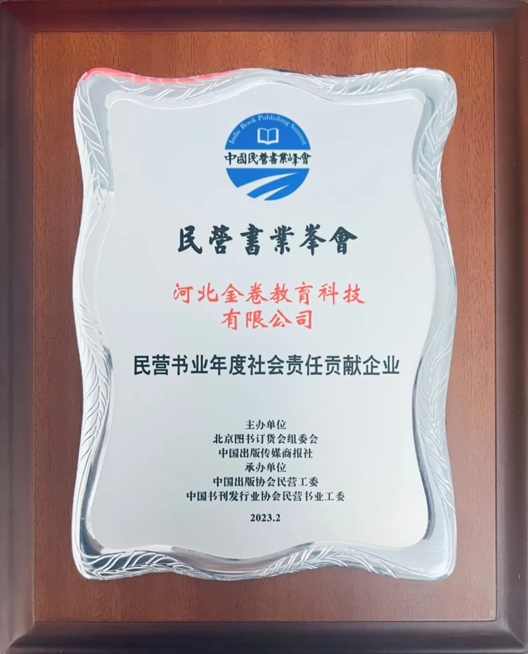 衡水金卷·先享題|2023民(mín)營書(shū)業峰會召開:河北金卷榮獲“年(nián)度社會責任貢獻企業”稱号