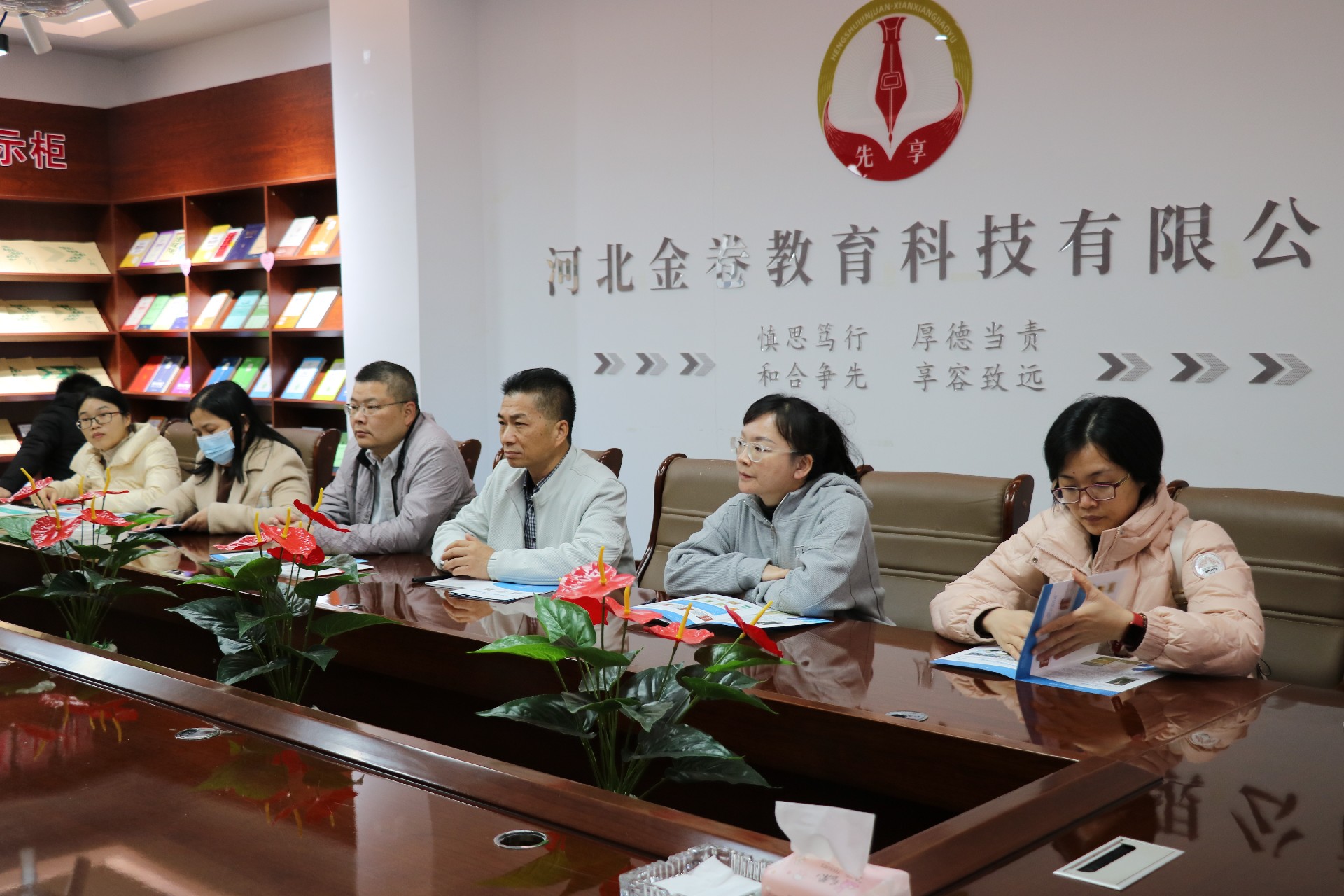 2023年(nián)3月25日(rì)上午,來(lái)自(zì)廣西貴港市**中學的教師(shī)考察組走進河北金卷,公司黨支部書(shū)記高萬民(mín)、教研中心總編葛雙懷接待考察組。考察組一行首先參觀公司文化展廳并聆聽講解,了解《衡水金卷·先享題》系列産品研發流程和團隊實力。考察組還(hái)走進教研中心、營銷運營中心辦公大(dà)廳現場觀摩,深入了解金卷試卷的命題、組稿、編輯、校(xiào)對、出片、排版過程以及銷售、發貨、售後等服務細節,并于公司會議(yì)室開展座談交流。